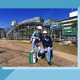 (NL) Earlier we spoke with Jelle and Laura about the beer crate bridge, now we look at the execution of this record attempt. Last Wednesday visited the constructionsite of the bridge, to see what is involved in making the bridge? Other clips are from May 11, the day of the attempt, |