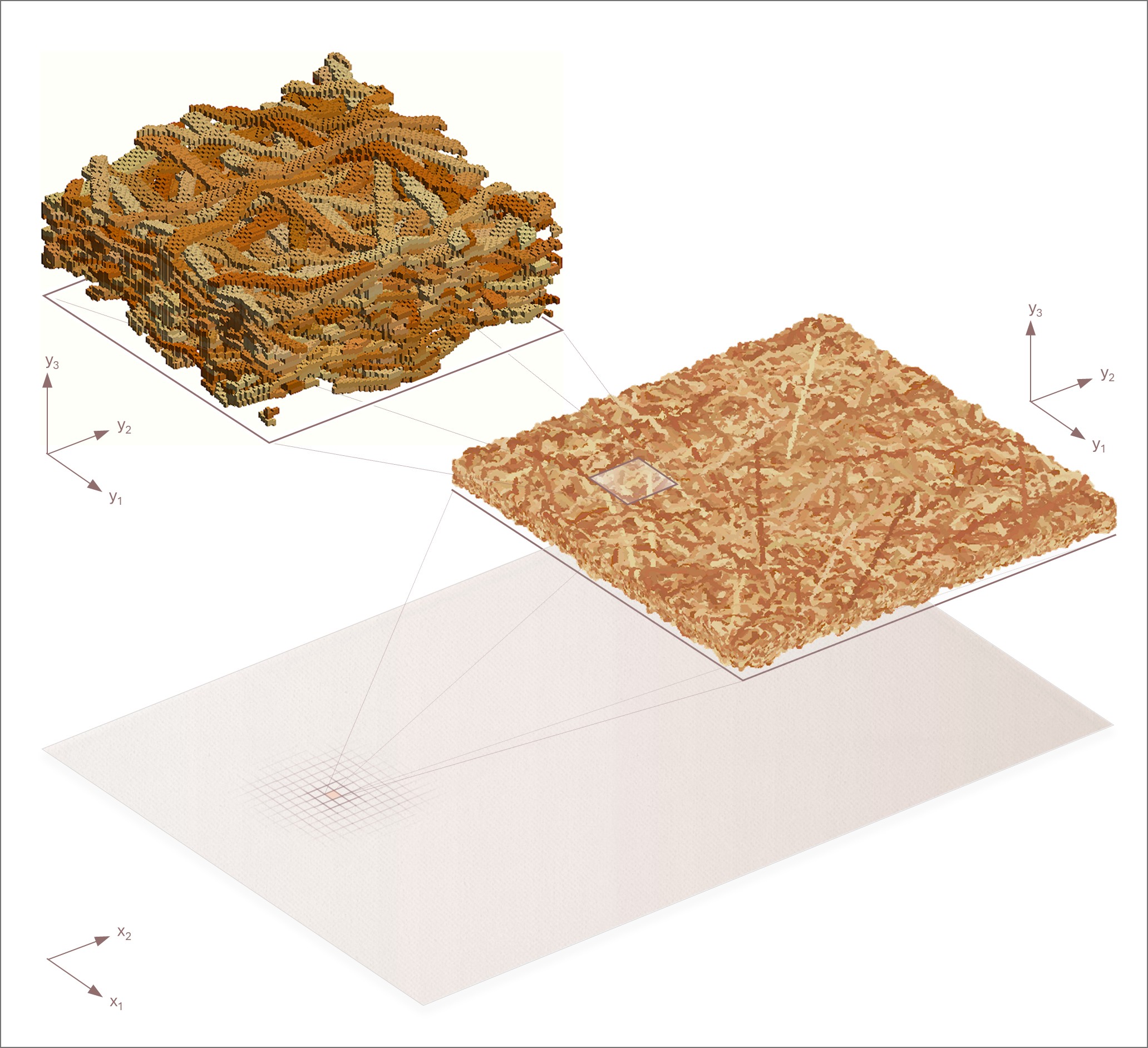 A three-dimensional microstructural model of a fibrous network was developed and used in an asymptotic homogenisation framework to investigate the hygro-mechanical behaviour of paper sheets. The model was constructed through sequential fibre deposition, where fibres were treated as transversely isotropic solids consisting of linear hexahedral elements. Both uncoated and gelatin-coated sheets were generated, and the influence of fibre rigidity, fibre length, and coverage on the effective properties was examined.
